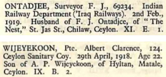 By contrast, Ceylon sent roughly 2,300 “volunteers” to the UK. They included 100 men and 5 officers of Ceylonese and British origin of the Ceylon Sanitary Corps (CSC), which was attached to the Royal Army Medical Corps. The CSC’s main tasks were to “clean up foreshores and areas designated for army encampment, water testing and pumping, disinfection and pest control.” The CSC operated around Basra, Baghdad and Hinaidi of then Mesapotamia (Iraq).
