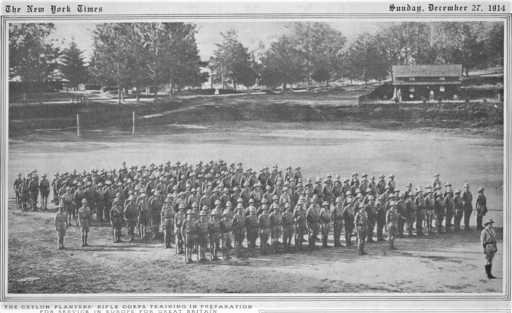 In addition to the CSC, 230 personnel from the Ceylon Planters Rifle Corps (CPRC), which was made up of young British tea or rubber planters, were deployed. A contingent of officers and men of CPRC left Ceylon for Egypt in October 1914 where they served under the 1st Australia New Zealand Army Corps (ANZAC) defending the Suez Canal till March 1915. The remaining half of the CPRC served with various British units. On April 1915, the CPRC personnel with the 1st ANZAC headquarters landed at Gallipoli. The disastrous Gallipolli campaign lead to the capture, evacuation and imprisonment of a large number of Commonwealth forces.