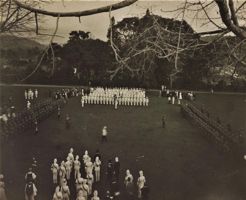 “The Volunteer Force could no doubt be easily and largely increased on an outbreak of war, and it is safe to assume that both Europeans and Burghers would be prepared to make considerable sacrifices if need be in defence of the colony. The native inhabitants to all appearance are also loyal and contented; but in the event of an enemy landing and gaining an initial success—especially if trade were interrupted and rice scarce—the situation would not be without a certain.”