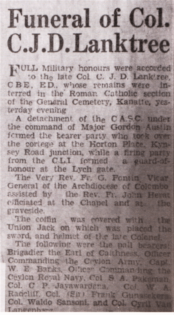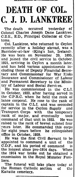 Death of The Last British Officer to have Served with the Ceylon Army Service Corps