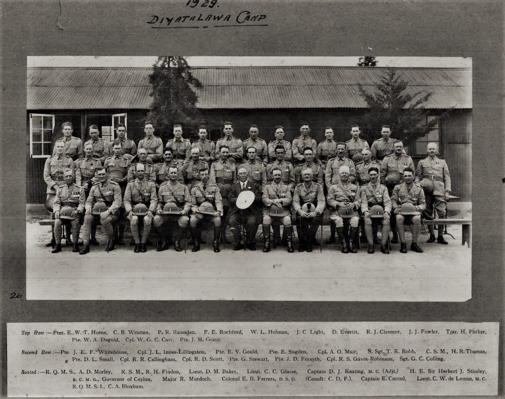 Earliest known group photo of CS&T with Governor and CDF Commandant in Diyatalawa, 1929. The CO at the time was GO Hunt.
