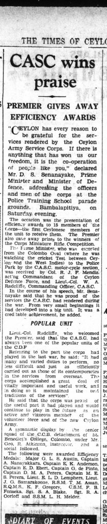 - February 28, 1949: Prime Minister DS Senanayake Gives Efficiency Awards to the CASC