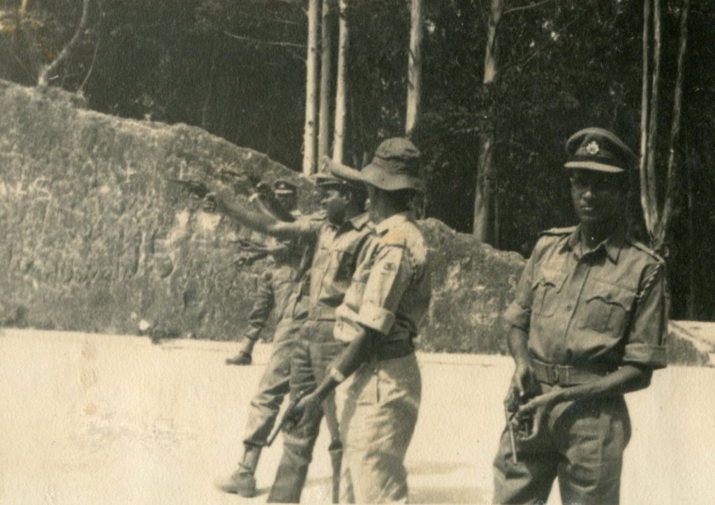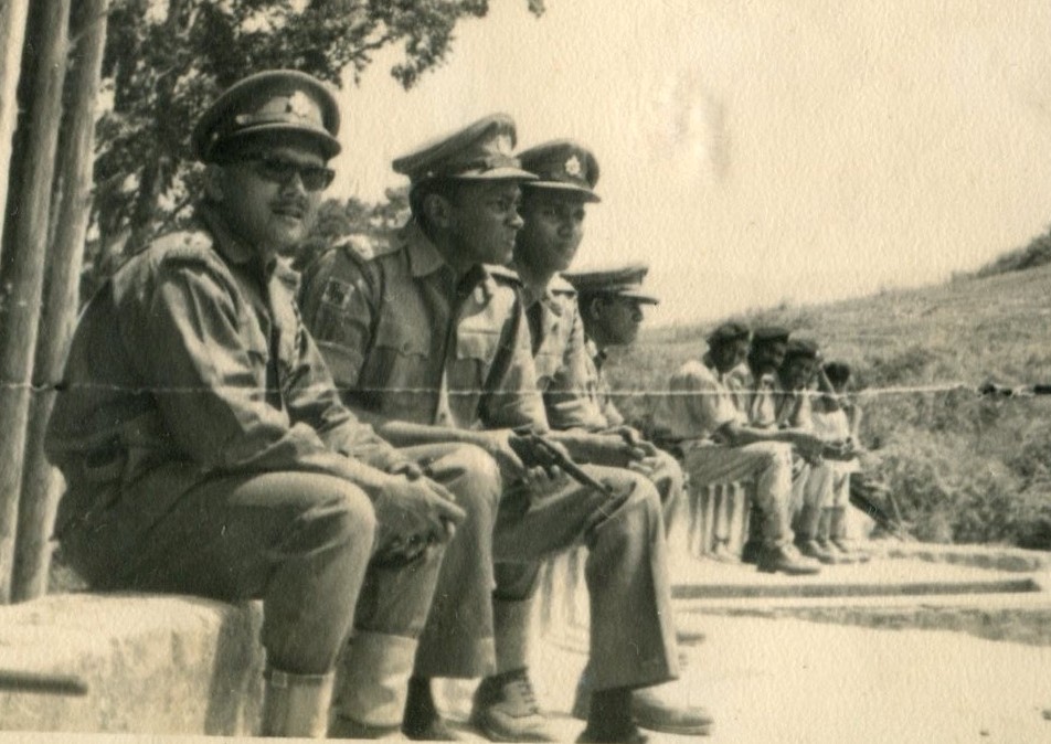 Task Force Anti Illicit Immigration (TFAII) camp at Iyakachchi near Elephant Pass (believed to have been taken in 1967) TAFAII commander was Col. David Raymond of SLLI. SLASC (V) was there in an infantry support role. Gen. Attygalle, to left of of Gen Attygalle is Capt, Dudley Fernando and to the right of Gen Attygalle is Capt Siri Wijegunawardene.